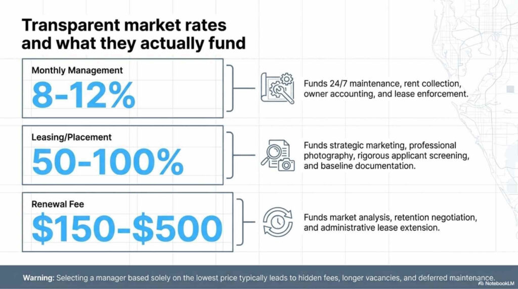 Selecting a Tampa property manager based solely on the lowest price often leads to hidden fees, longer vacancies, and deferred maintenance that costs you more in the long run. The “Cheap” property manager is typically the more costly option.